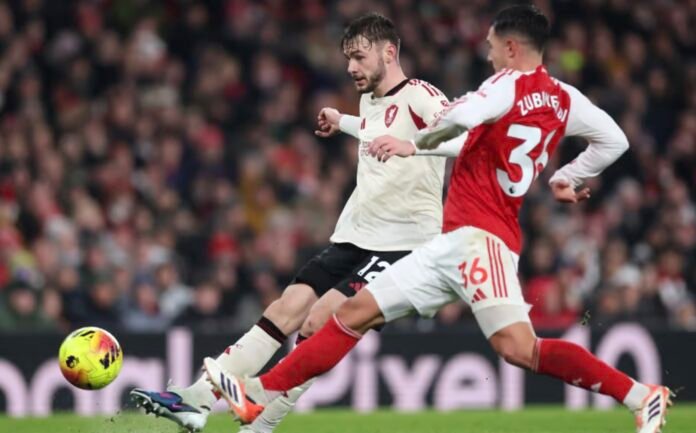 The 22-year-old full-back was forced off the field (literally, by Gabriel Martinelli) during Thursday’s 0-0 Premier League draw at Arsenal after landing awkwardly near the touchline when chasing the ball in stoppage time.