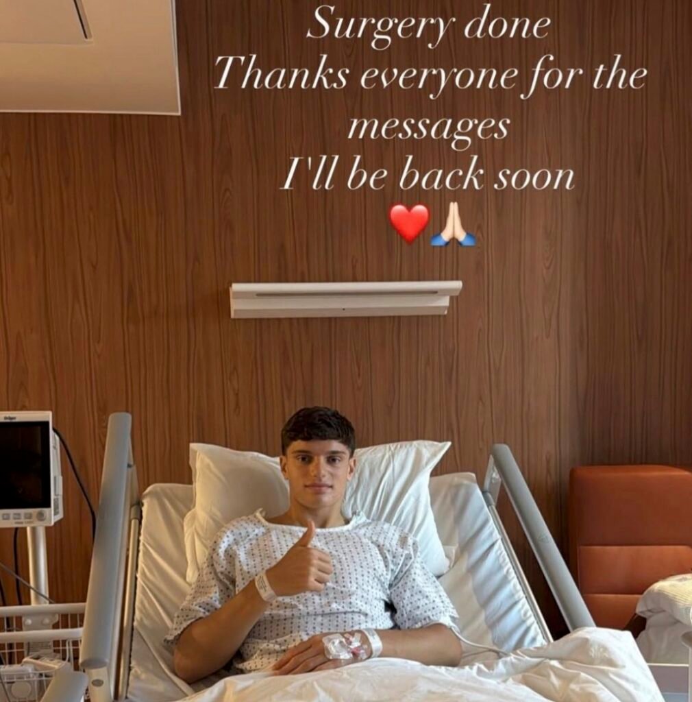 The 18-year-old Italian shared an update on social media following the operation’s success.